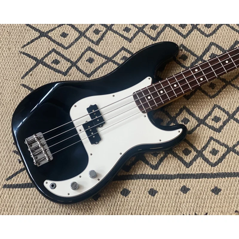 2005 Fender Precision Bass in Black. Features alder body, maple neck, rosewood fingerboard, and white pickguard. Made in Mexico.