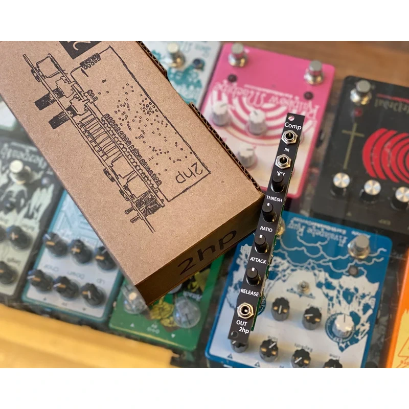 2hp Comp is a complete compressor with a footprint small enough to fit into any system larger than 1HP.Featuring controls for Threshold, Ratio, Attack and Release, as well as a sidechain key input, it has the sound and abilities to go up against any compressor twice its size.