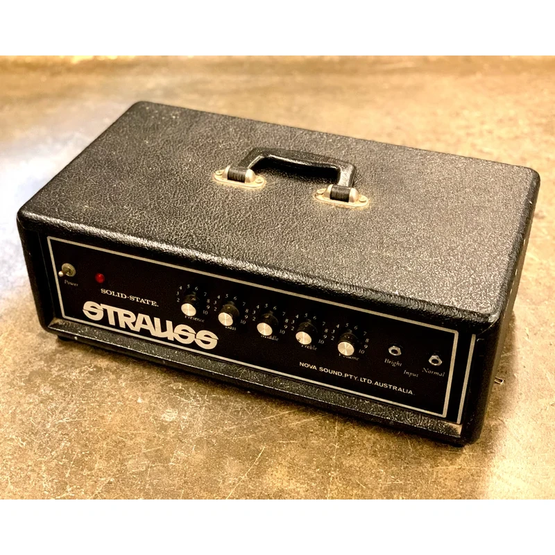 1970s Strauss Solid State dual channel amplifier providing 60w of clean headroom with powerful EQ. Offering both a bright & normal channel; the Strauss Solid State is ideal for pushing speakers into overdrive but remaining clean as a bell for gain-stacking dirt pedals. Made in Melbourne, Australia.