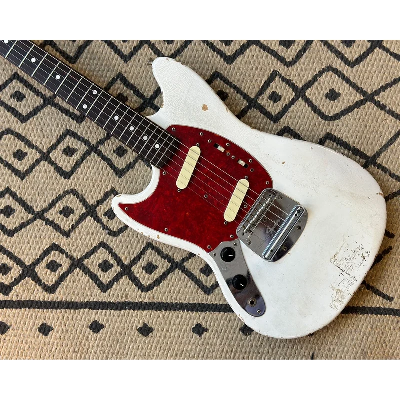 1993-1994Fender Japan MG69-55Mustang. A total weapon with a slick Olympic White nitro-cellulose refinish. Made in Japan. It’s a lefty!
