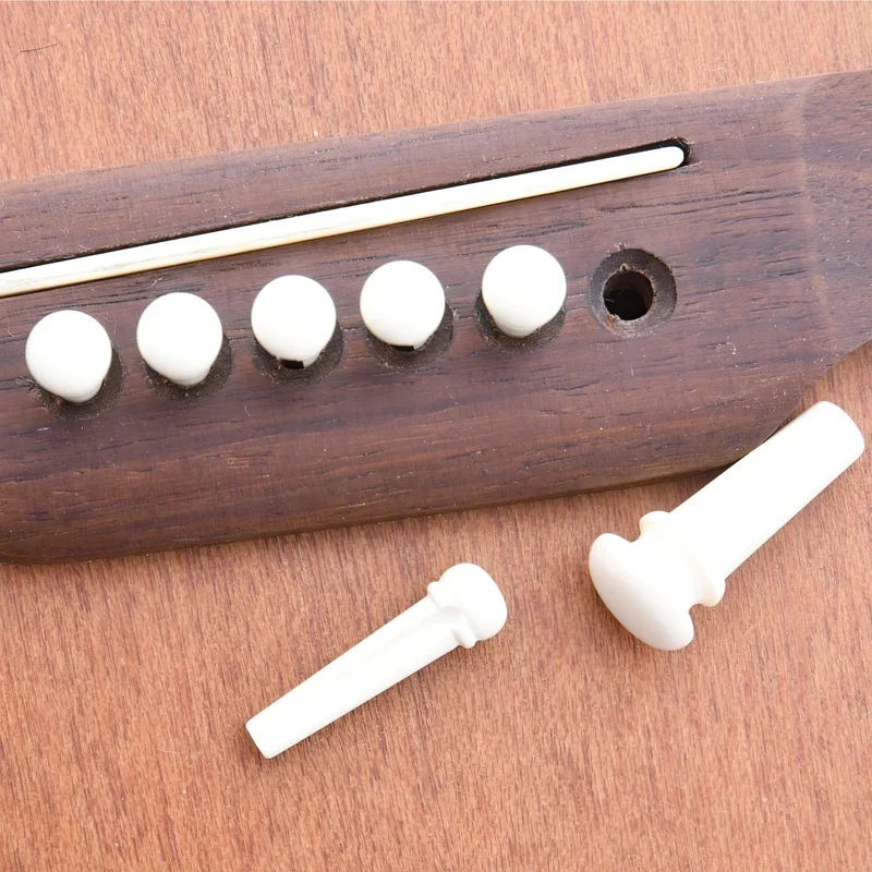 Plain ivory white, authentic slotted replica pins as used on L & J model Gibson guitars from 1932-1938. Set includes six bridge pins and one endpin. Bridge pins have a 7.89 mm head diameter, 5.74 mm cone diameter & 5 degree taper. Imported from Germany.gree taper. Imported from Germany.