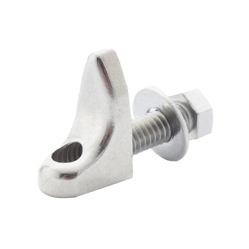 Set of 1 each – nickel plated L-shoe; stainless steel washer; 3/4″ stainless steel hex head bolt. Hex head fits 5/16″ bracket wrench (BA40). Bolt length correct for 1/2″ rim thickness