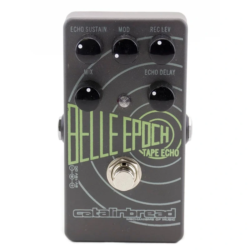 The Catalinbread Belle Epoch Tape Echo, has tape echo sounds so authentic youd swear there was tape inside the pedal! Inspired by the Maestro Echoplex, EP-3 model, perhaps the most famous tape delay ever, the Belle Epoch features everything we love about the EP-3 in a small, maintenance free pedal format. There are a lot of subtle and not-so-subtle traits of the Echoplex that needed to be implemented in order to be authentic. The preamp, the self-oscillation character, the ability to control the record level of the signal hitting tape, the wow and flutter, the way the repeats decay, the way the circuit interfaces with the amp and other pedals.