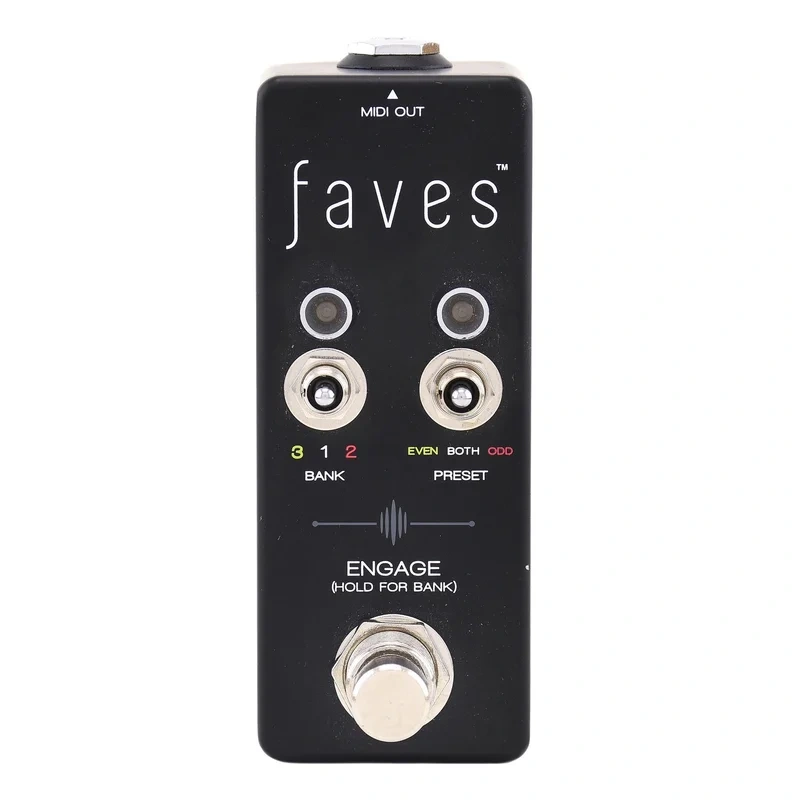 Faves is a dead simple MIDI controller that allows the user to access six presets as well as live mode on-the-fly for any of the Chase Bliss pedals.