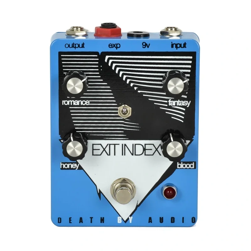 The Exit Index from Death By Audio is an all analog tremolo with blendable distortion.Presumed untamable yet incredibly interactive and wicked cool, the Exit Index is great for expressing melancholy love and makes you turn your at-first pedal testing blues
