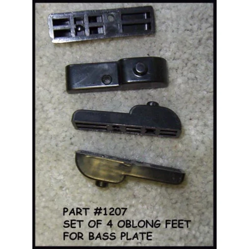 2-1/4 inch x 5/8 inch oblong, hard black plastic, sold as a set of 4. Screws not included.For more information on Accordion Repairs at - click here!