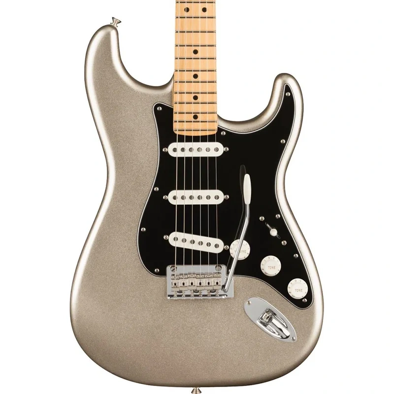 The 75th Anniversary Stratocaster is finished in a striking Diamond Anniversary finish with a matching painted headstock. The maple neck features a Modern C profile, medium jumbo frets and a satin finish for supreme comfort and playability. Vintage-style 60s pickups provide sweet Strat tone, while a 2-point tremolo delivers smooth vibrato and improved tuning stability. Every Anniversary Stratocaster features a special 75th anniversary neck plate and ships in a deluxe gig bag.