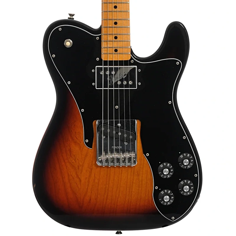 Twang on with this very cool reissue of the classic '72 Tele Custom! Features include a glossy sunburst finish on alder body, maple neck, big pickguard. Equipped with both single coil and humbucking pickups. Tweed hard shell case (2 broken latches, 2 newer