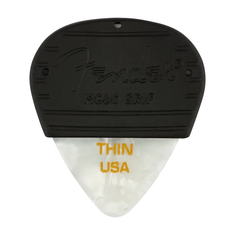 The Fender Mojo Grip is a nitrile rubber sleeve that provides a better gripping surface, and extra thickness to a 351 shape pick. The grips come with a Celluloid pick already in place. The best part of the Fender MojoGrip is that the grip is separate from the pick. If you wear down or break your pick, just carefully slide the pick out of the grip and replace it with another pick.