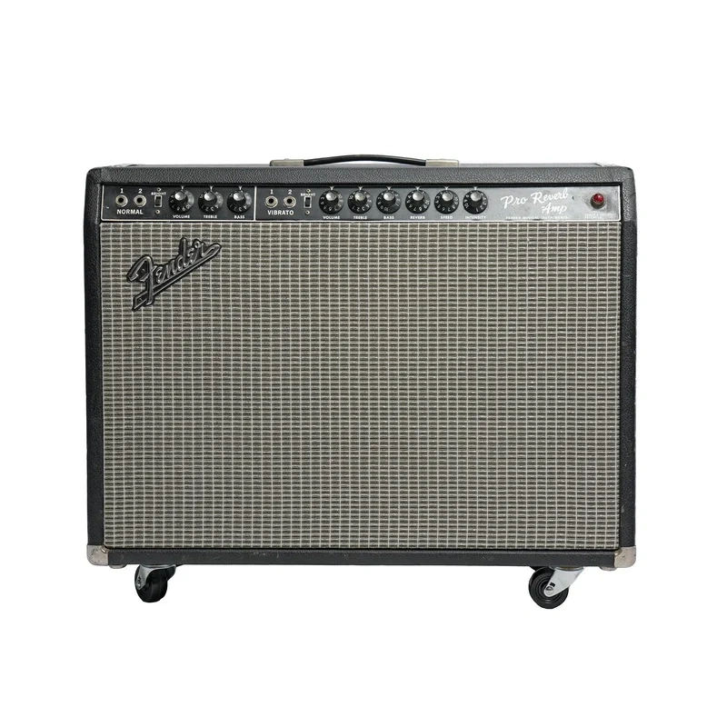 A great workhorse amp with a cool vibe, this 1967 Fender Pro Reverb is equipped with 2X12 (newer Jensens) speakers, delivering a 40-watt output. It features dual channels, tremolo, and reverb. Recent updates include a new grill cloth and AC cable.