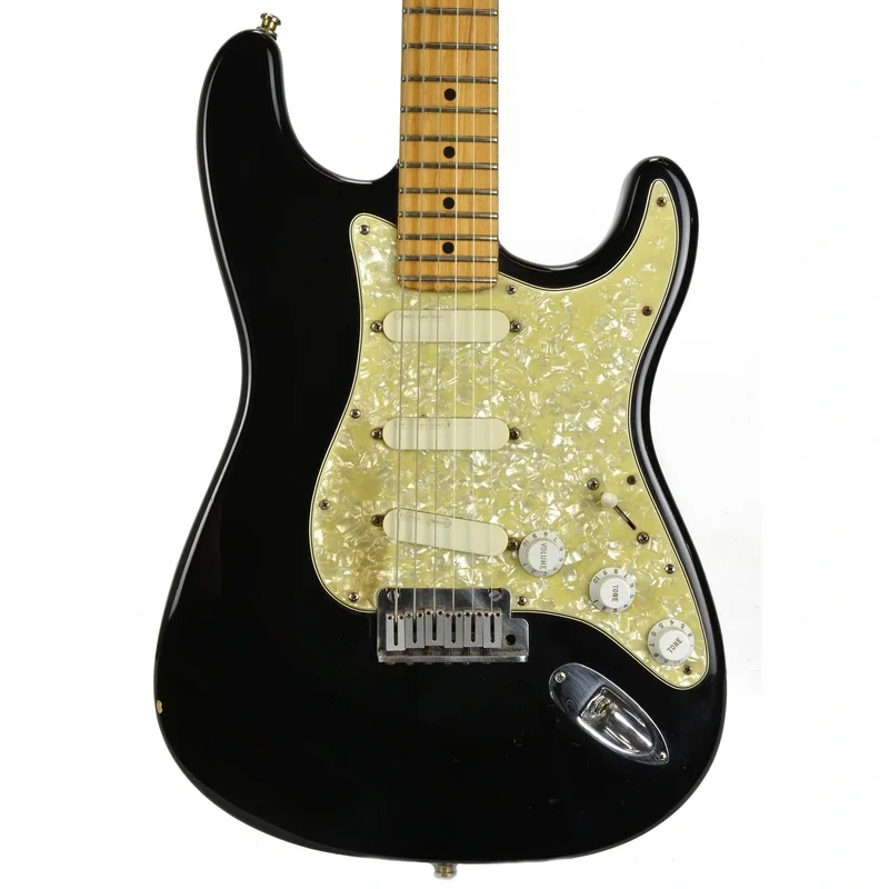 The Strat Plus series was Fender’s modified upgrade series to their late ’80s American Standard Strats. The Strat Plus is enhanced for player friendliness with medium jumbo frets, a Fender roller nut (LSR from 1993-onward), and Fender Lace Sensor Gold pickups. Lace Sensor Golds are rated at 5.8k, and are lower in output with a bell like chime notable to Strats, but with 60-cycle hum resistance. The bridge Lace Sensor is wired to a Fender TBX circuit, which cuts either treble or bass, as opposed to a traditional tone pot which only cuts treble when rolled off.