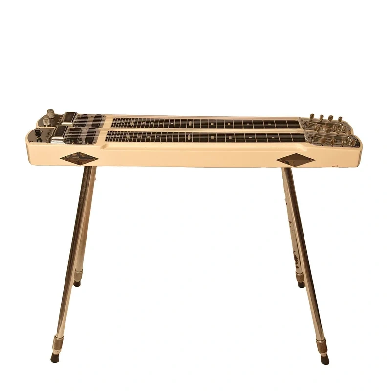 This Fender Stringmaster Double Eight was a workhorse back in country music's golden age before pedal steel took over. Refinished in white, features include two 8-string necks and tunings, two pickups per neck and unique blend controls. 24-1/2" scale per n