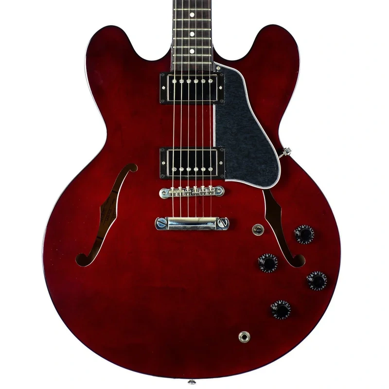The 2018 Gibson ES-335 DOT is designed with the working musician in mind and pairs innovative thinking with time-honored tradition. The Rounded “C” single-piece maple neck, rosewood fingerboard, and hand-rolled neck binding give you an unmatched playing feel. The Burstbucker 1 and Burstbucker 2 humbucking pickups ensure that you will always have the versatility to match your own creativity. New finishes include Blues Burst and Wine Red.
