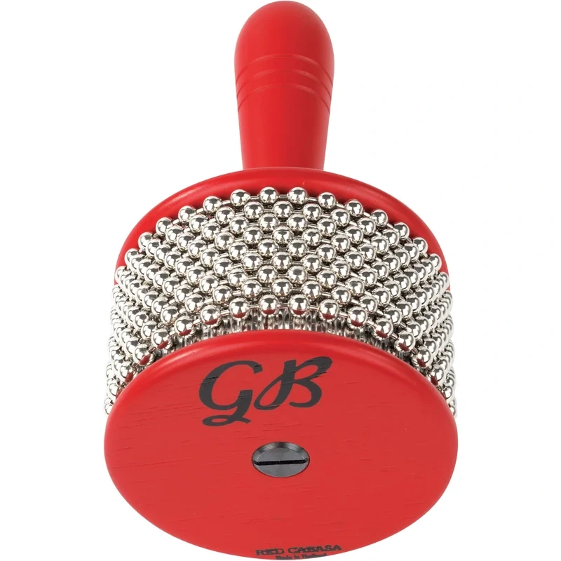 The Gon Bops Red Cabasa is light and easy to handle, making it easy to spin, shake, tap, and scrape the steel beads across the textured steel cylinder. It's 4" in diameter (not too big, not too small) with grooves in the handle for a better grip.