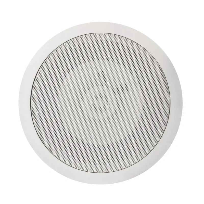 Ceiling loudspeaker without rear chamber for ceilings from 10 40 mm. Integrated mounting brackets and pluggable protective grille. Equipped with 6.5 woofer and 0.75 tweeter in coaxial arrangement, for short listening distances. Integrated passive crossover