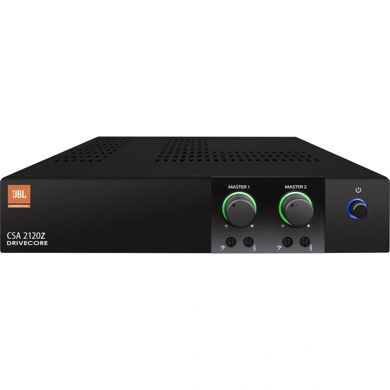 TheJBL CSA 2120Z Audio Amplifier (2x 120W)provides a compact and powerful amplification solution for installed applications. The unit utilizes a universal switch-mode power supply and Crown's DriveCore technology to deliver reliable and efficient sound amp