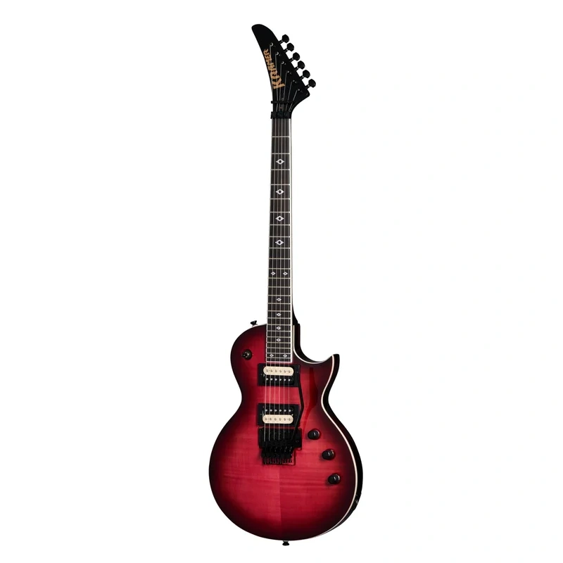 The Kramer Assault startedlife as the Kramer Custom when it was first released in 2000. A modern take on the Les Paul, it has since become a popular model for hard rock and metal players who want a lighter and sleeker single cutaway guitar. This newly updated version features a new three-piece thermally-aged maple neck with a satin-finished back, K-Speed Slimtaper C profil, and 25.5″ scale length, while the ebony fretboard is equipped with 24 jumbo frets and decked out with classic Kramer Diamond Eye inlays. The mahogany body is capped with a AAA flame maple veneer and is packing a pair of Kramer USA Eruption humbucker pickups for full-throttled tone and plenty of attitude. They’re wired to individual volume controls and a master tone control, all of which use CTS potentiometers. Of course, we also included a Floyd Rose 1000 series tremolo and R2 locking nut so you can dive-bomb any audience into submission at will and a premium gig bag to help keep it safe when you’re headed out to blow everyone away at your next gig.
