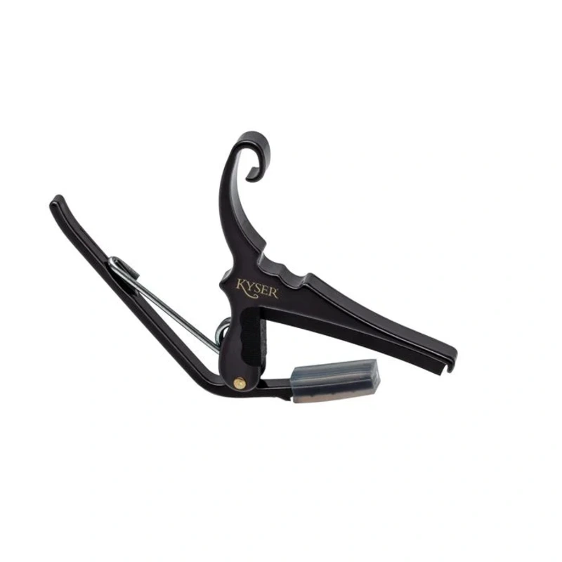 Kyser's Quick-Change Capo is a favorite of acoustic guitar players worldwide! The strong, lightweight aluminum design won't let you down, even after years of use. The Quick-Change Capo uses a spring-clamping mechanism for easy-on, easy-off with just one ha