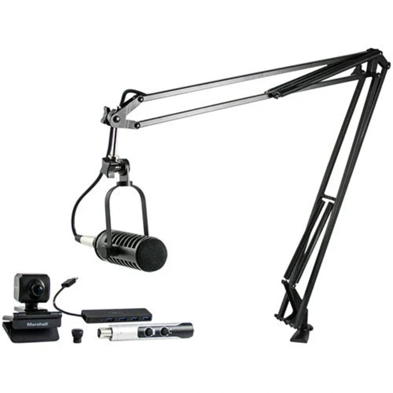 TheMXL VPS Solois a visual podcasting bundle designed to deliver simple and effective audio and video for solo podcasting and vlogging in homes, project studios, or mobile setups. It includes one BCD-1 broadcast cardioid dynamic microphone, one articulatin