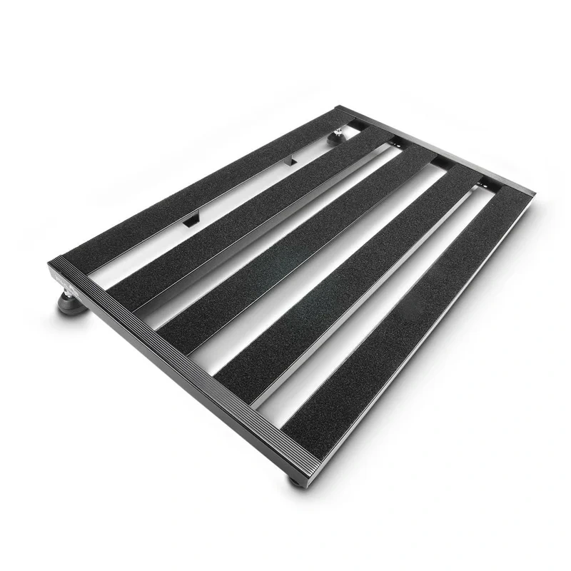 Universal aluminium Pedalboard for the storage of all commercially available floor effects. The cross bars as well as the height and the tilt of the Pedalboard can be individually adjusted. The cross bars are already covered with Velcro (fleece), a sufficient amount of hook strap is also included. Power supplies and similar peripheral devices can be mounted below the board. For this the Pedalboard features 4 practical hooks on the underside. 2 Elastic bands are supplied – making fixation easy!