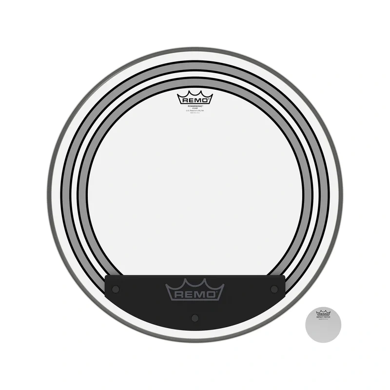 Powersonic Clear Bass drumheads feature focused lows with increased attack. Constructed with 2-plies of 7-mil and 5-mil Clear film, Powersonic Clear bass drumheads provide two specifically placed subsonic dampening rings and external snap on dampening system with impact patch for more attack. The external snap on dampening system allows you to customize you sound for different playing situations.