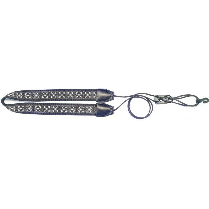 Woven nylon neck strap for ukuleles with sound-hole hook, grey flower pattern- Length: 69 - 91 cm (27.2 - 35.8") (adjustable thanks to two buckles)- Width: 25 mm (1")- Sound-hole hook: Plastic