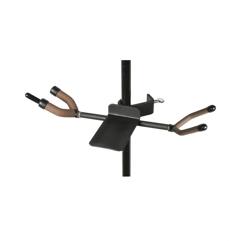 Keep your instruments securely ready for action while on stage. Clamps to your mic stand. Violin head with bow peg and a mandolin head. Will also work for many ukuleles.