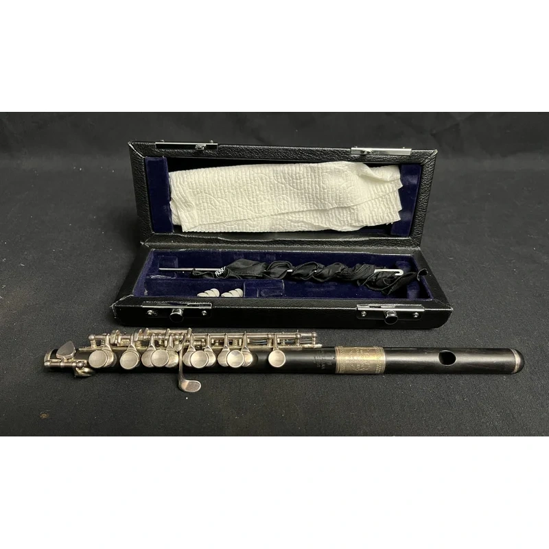 Previous owner purchased in 2016 from the Flute Center of NY, and shortly thereafter had some repairs done by Jerry Schurr. These included replacing tenon corks, refitting the body joint inner tenon tube, reseating pads, and some key adjustments. The piccolo remains in very good playing condition with no leaks or other issues.