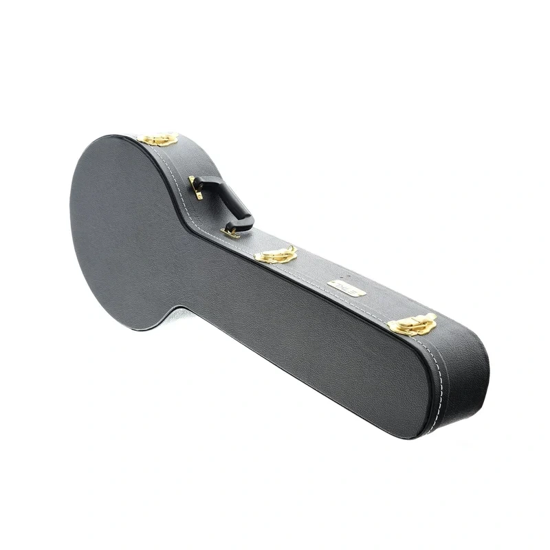 Premier series flat top case. Shaped wooden shell, black leather-look covering, plush padded interior. Fits openback tenor banjos with 11″ rim diameters.