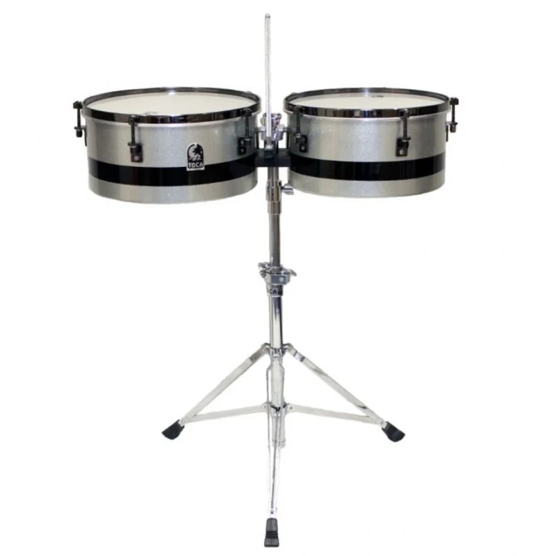 The Toca Eric Velez Signature Series Timbales have been revamped with a classy gun-metal glitter finish and black mirror chrome hardware. These 14 and 15 in. timbales project with a ton of cut. Eric's blurring style is based heavily on Afro-Cuban technique