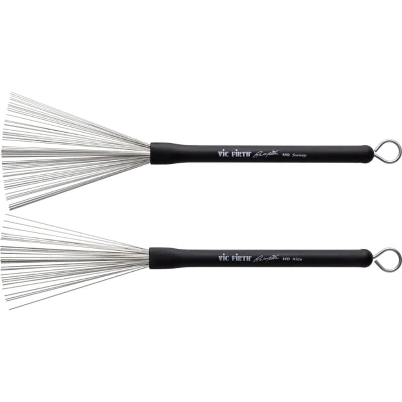 A multi-platinum recording artist, Russ Miller has played on several Grammy Award winning recordings and has experienced a diverse musical career with talents like Ray Charles, The Fifth Dimension, Natalie Cole, Tina Turner, Bobby Caldwell, Nelly Furtado, The Psychedelic Furs, Hilary Duff, Steve Perry, Andrea Bocelli, Daniel Bedingfield and Meredith Brooks. Additionally, Russ is a 7-time Modern Drummer Readers Poll winner and has authored two books, three DVDs and two solo albums. To address the challenges of todays players, Russ new Hi-Def Retractable Wire Brushes offer a totally new approach in brushes with a dedicated brush for each hand! The Sweep brush features medium gauge wire for a smooth sound, while the Ride brush offers clear projection and incredible rebound with its heavy gauge wire and tight spread. The Riding hand plays itself, Russ explains. It has a rebound that I have never felt from any other brush. Playing fast tempos is a breeze! The Sweeping hand is big and musical with a great sound! This totally new approach to the brushes makes them more accessible to a whole new generation of players! Lets face it, Russ continues, brush playing has become a bit of a lost art. The tools themselves havent been updated to deal with what players are now facing in live performance with Pro-Tools tracks flying in on stage, walls of amps, triggered drums, etc. Trying to get brushes to carry through a large ensemble in a big hall is very difficult. I needed brushes that could cut through the music but in a real musical way. And thanks to my work with Vic Firth, we have something that is unique and fantastic!