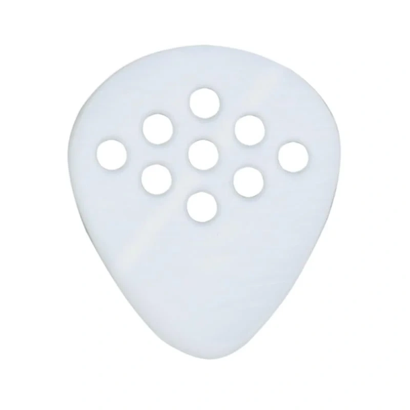 For southpaw pickers only! 1.20 mm standard shaped flatpicks with dual beveled-edge tip for left handed players. Has 9 holes in a diamond pattern for grip. Bluegrass players (and anyone else who craves a thick plectrum) - this pick is a must have.