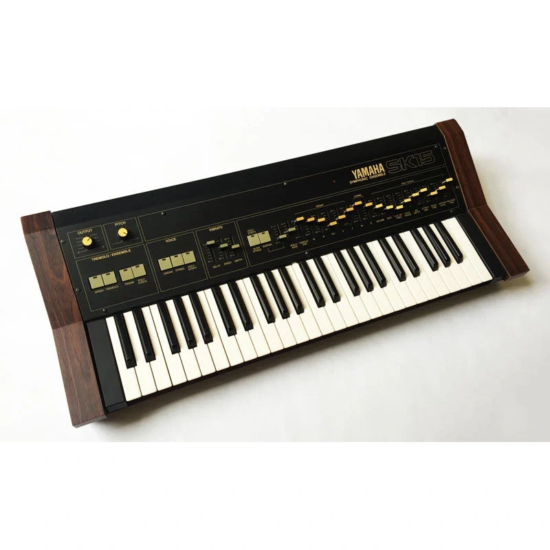 Vintage YAMAHA SK15 Symphonic Ensemble synthesizer. Classic '70s string machine & poly-synth with beautiful warm synthetic tones featuring resonant low-pass filter, ADSR, EG Depth & feet slider plus an organ section controlled by 5 sliders acting a